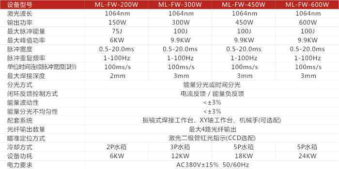 ML-FW-200W/300W/450W/600W光纖傳輸激光焊接機選配CCD攝像監視系統,方使觀察和定位。光纖傳輸激光焊接機焊斑能量分布均勻,具有焊接特性所需要的光斑。光纖傳輸激光焊接機適應各種復雜焊縫,各種器件的點焊,以及mm以內薄板的縫焊。光纖傳輸激光焊接機采用英國進口陶瓷聚光腔體,耐腐蝕,耐高溫,腔體壽命(8- 10年,缸壽命800萬次以上。可定制專用的自動化工裝夾具,實現產品的批量生產。